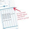 Two-sided time cards for Pyramid 2500, 2500k1, 2600, 2650, 2650Pro, 6200 and ,6400 Time Clocks. Side A includes days 1-15; Side B includes days 16-31. Data fields include Number, Period, Name, Regular Hours, Rate, Amount, Overtime Hours, Rate, Amount, Deductions, Actual Pay, Pay Date, Employee Signature, Supervisor Approval and six columns for three IN/OUT Punch cycles with Total Column. Notched bottom design enables time clock to detect correct side of time card.Heavy duty card stock.100/pk. Printed in USA.