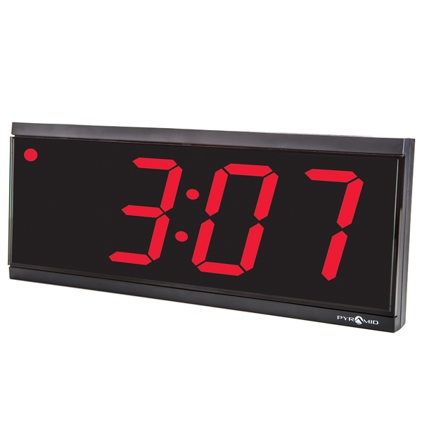 Stand alone digital clock with extra large 4″ numerals and ultra bright red LED display.